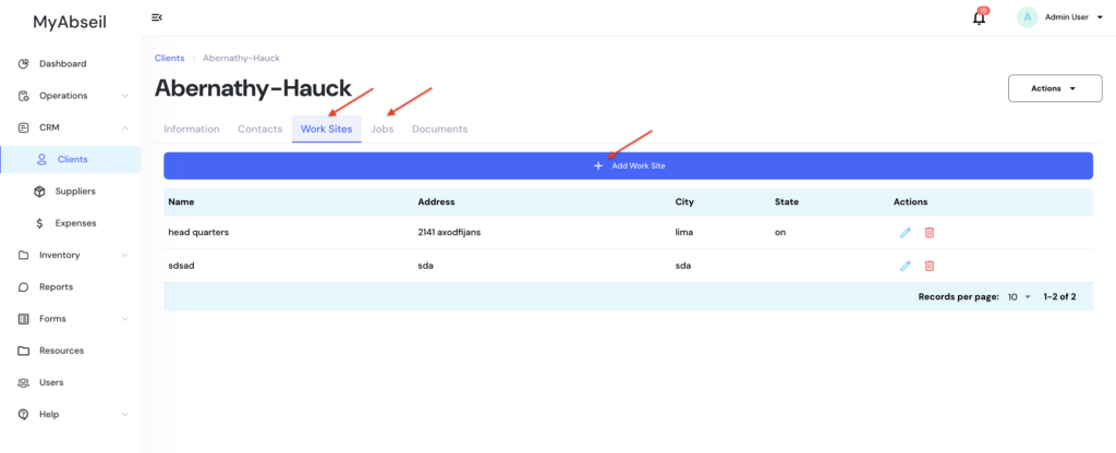 After a Client is created you can add Worksites and Jobs for that Client by navigating to the respective tabs