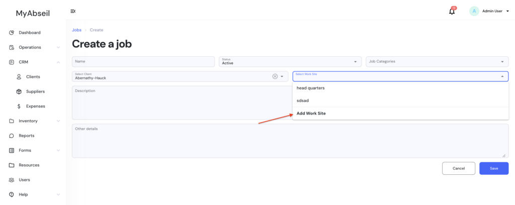 You can also create a new Worksite for an existing Client, on the fly, when you want to create a new Job