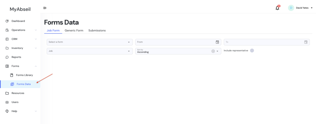 - Navigate to the Forms menu in the left sidebar.