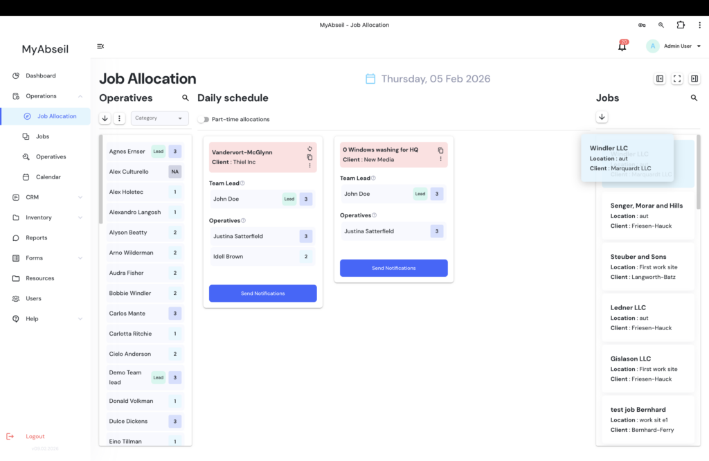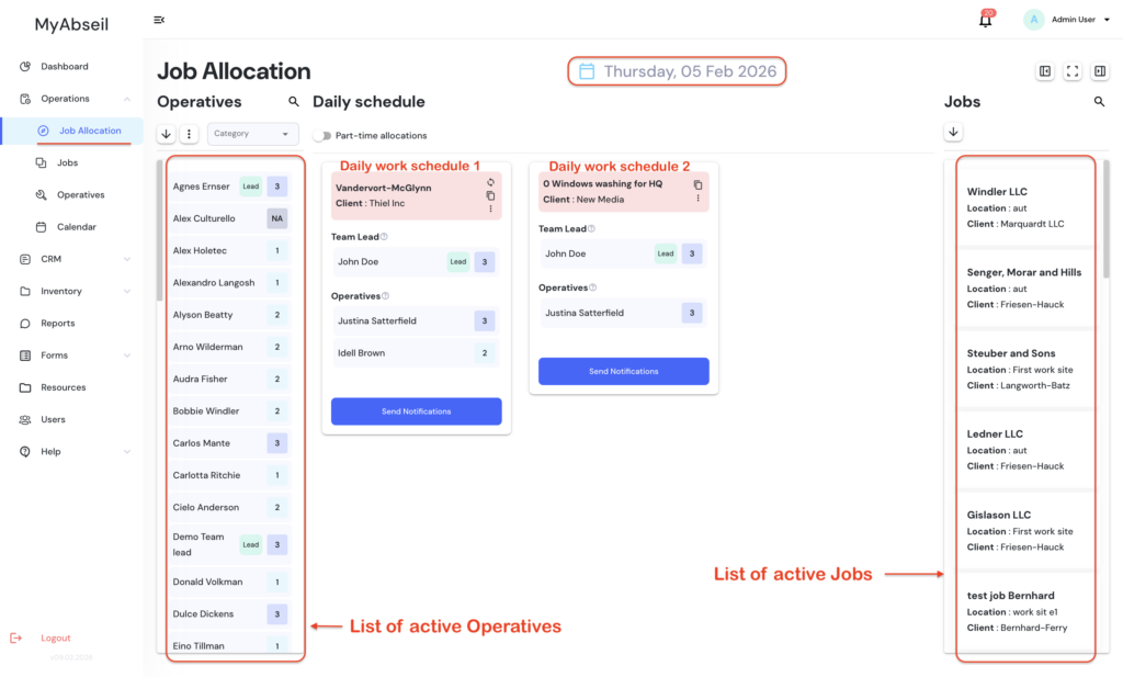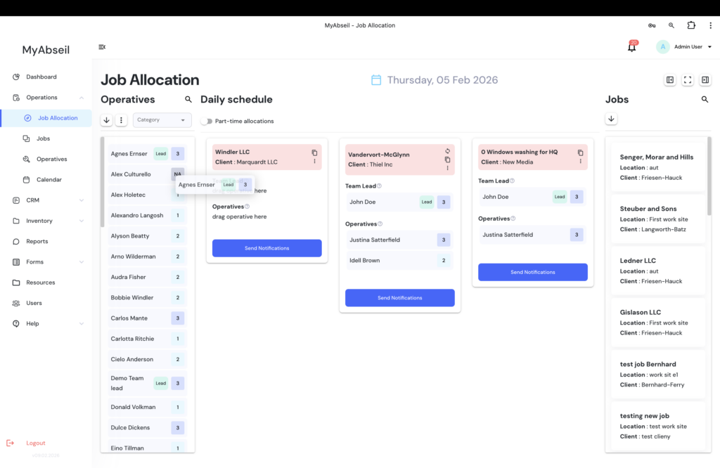 Once a job is created and your required operatives added in the system, you can proceed to the ‘Operations’ menu, ‘Job Allocation’ submenu.