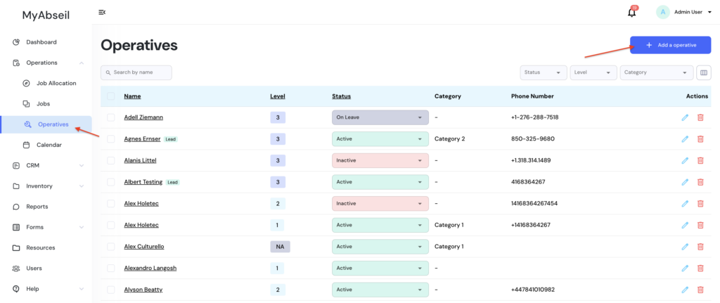 How to create an Operative Go to ‘Operations’ menu, ‘Operatives’ submenu and click ‘+Add Operative’ Doc navigationHow to add personnel certifications →