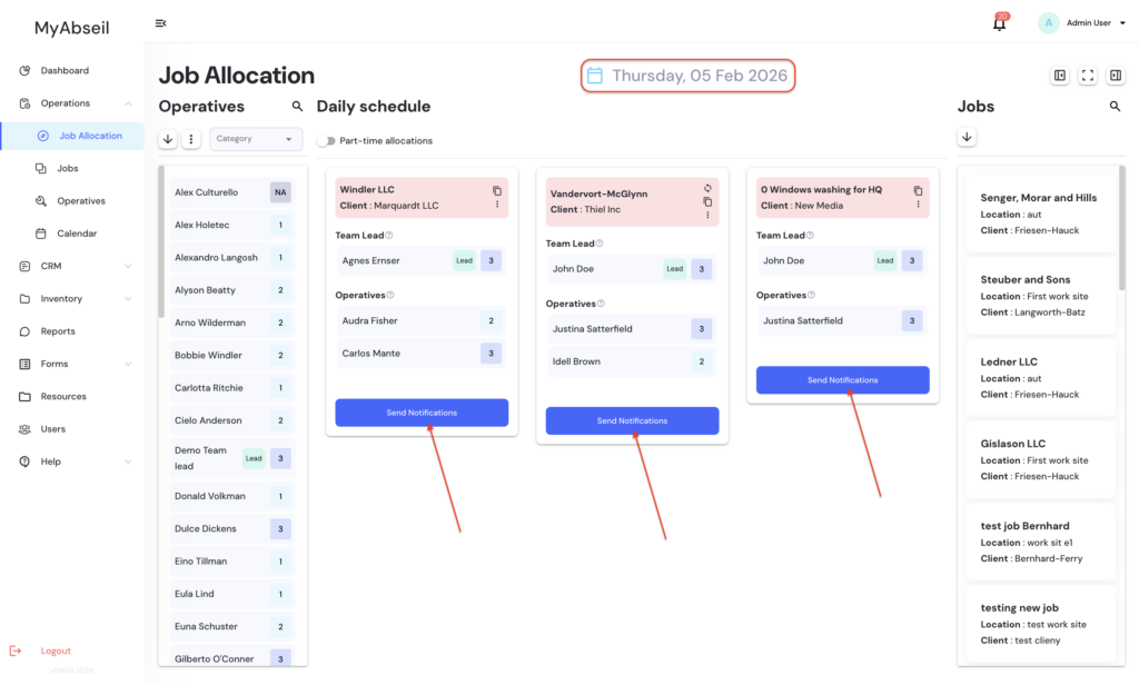 Once the operatives are allocated to your ‘Daily Work Schedule’, press ‘Send Notification’