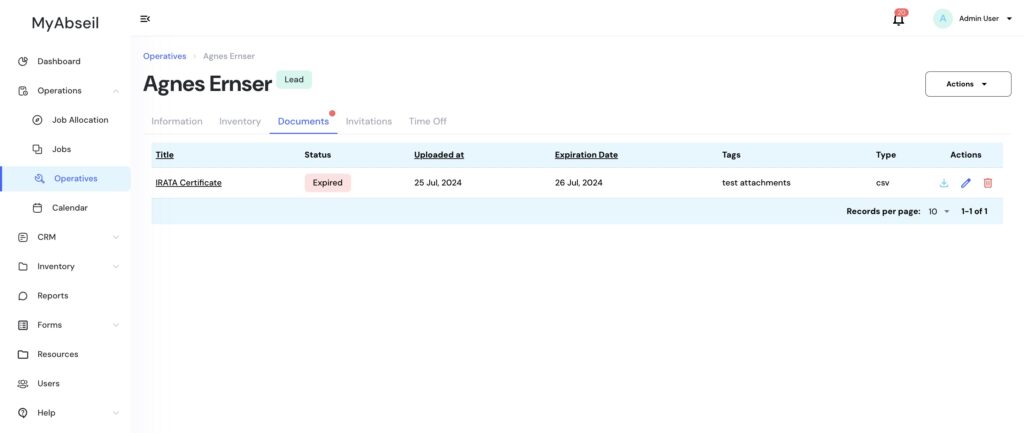 Select the required operative with active warning and navigate to the ‘Documents’ tab to delete the expired certification and upload the new one